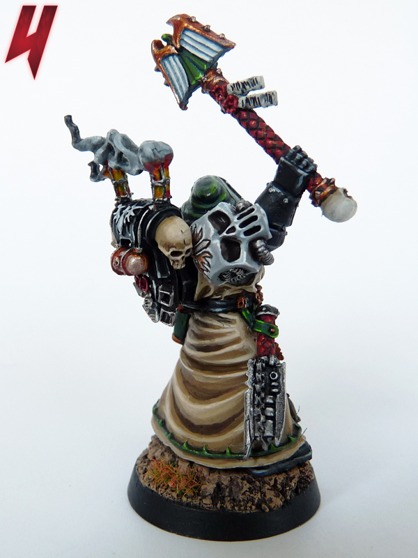 Uruk’s Asmodai is cleanly painted using a very visible layering style that looks remarkably similar to current codex illustrations. The result is fresh and spontaneous, not too blended or overworked. The contrasting deep shadows and sharp highlights of the robe give the figure a dynamism and fluidity that the model's largely static pose belies. I particularly like the way the Chapter icon has been detailed on the skull shoulder pad.